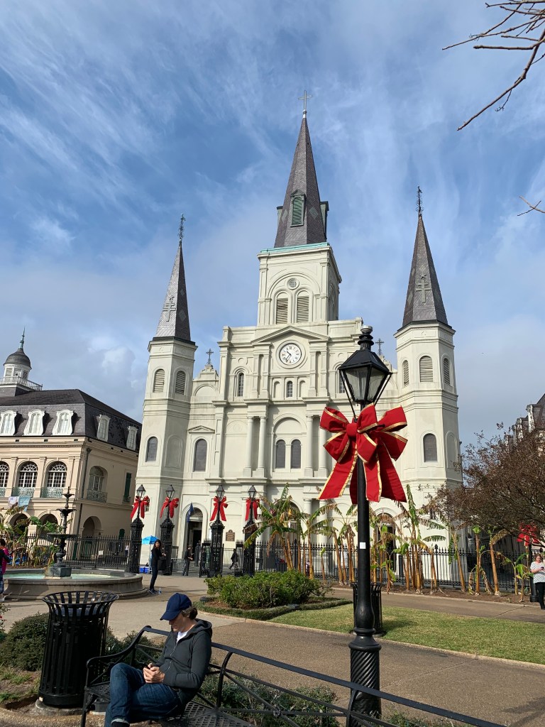 吃飽後,在傑克森廣場 (Jackson Square)和聖路易士大教堂(St. Louis Cathedral)散步。這個城市的夜晚和白天給我截然不同的感覺,前一晚路過教堂前,看到有許多街友、乞討者和做巫術、塔羅牌交易的攤販,充滿著神祕詭譎的熱鬧氣氛; 周末的上午,同一個地方,路上空空淨淨的,有一些遛狗的居民和文創市集,像是前一晚什麼也沒發生似的。