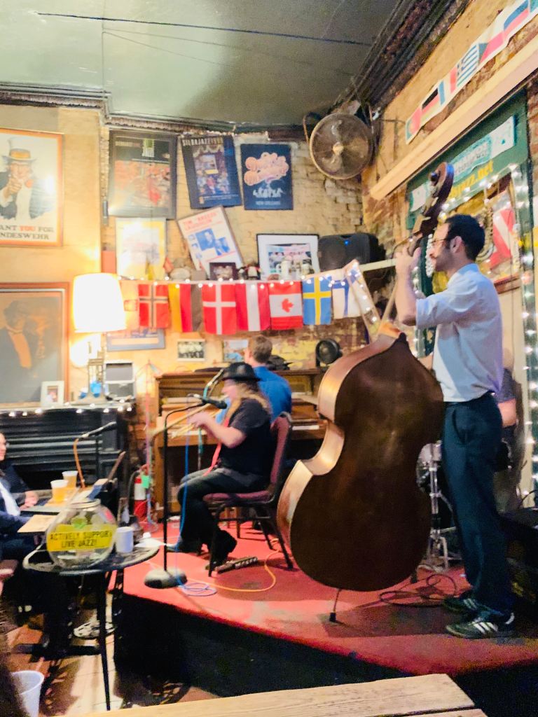 來到爵士樂的發源地,最讓我期待的莫過於聽爵士樂!我們來到一間酒吧 Fritzel’s European Jazz Pub,入場費是一杯飲料。紐奧良的爵士樂,受到藍調(Blues)、軍樂隊、黑人靈歌(Spiritual)、教會福音詩歌(Gospel)的影響,草根性十足,快活的節奏令人想跟著搖擺身體,主要由小號(或短號)、長號、單簧管編織旋律與即興,鋼琴、貝斯、鼓以切分節奏流動。聽紐奧良爵士好像在聽爺爺說故事,嘈雜豐富、自然親切,充滿濃濃的人情味,神來一筆的即興又令人叫絕。其他地方的爵士有時流於炫技,高貴優雅,有種高不可攀的感覺。